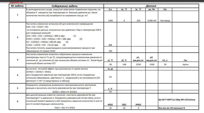 Вычислите тепловой эффект при разложении m грамм метана 2СН4(г) = С2Н2(г) + 3Н2(г), для стандартного давления при температуре 350 К, если стандартные энтальпии образования, кДж•моль^-1, соединений и их теплоемкости (СP, Дж•моль^-1 •К^-1) представлены в таблице
