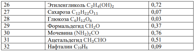 3. Рассчитайте давление насыщенного водяного пара над водным раствором данного вещества (П.2), используя данные таблицы 1 при 200С, если давление насыщенного водяного пара над водой при той же температуре составляет 25,67 кПа.