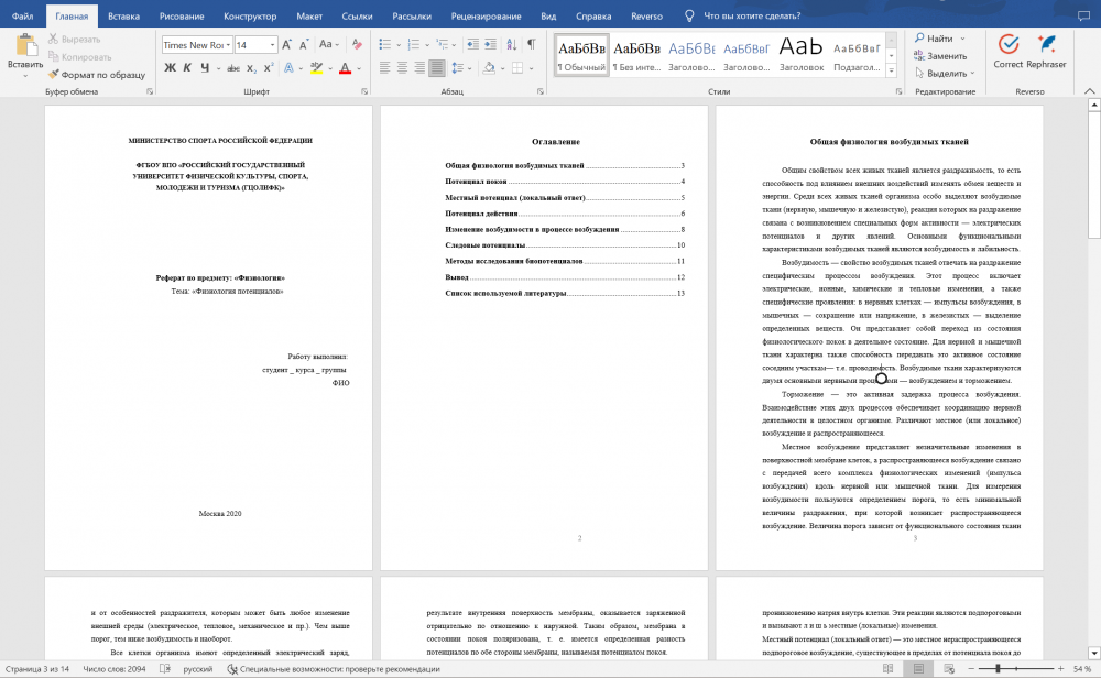 Реферат по предмету: «Физиология» на тема: «Физиология потенциалов».