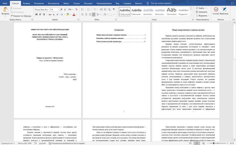 Характеристики реферата