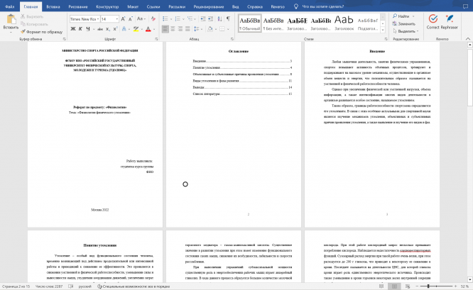 Реферат по предмету: «Физиология» на тема: «Физиология физического утомления».