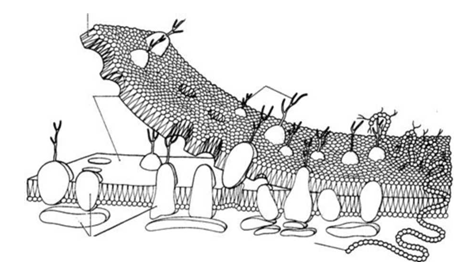 1. Обозначьте составные элементы жидкостно-мозаичной модели мембраны