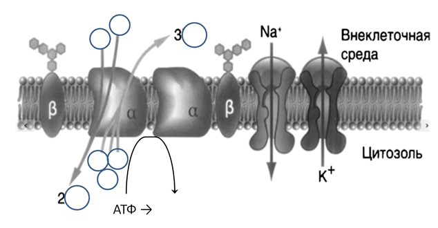 7. Допишите схему натрий-калиевого насоса.