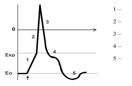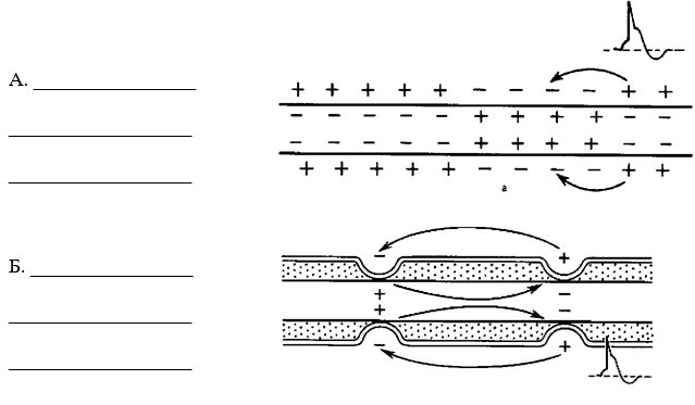 9. Подпишите фазы ПД. Ниже соответственно дорисуйте фазы возбудимости, подпишите их