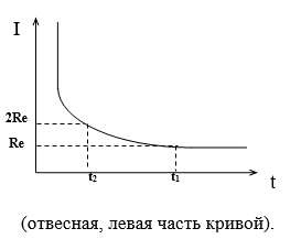 Кривая "интенсивность-время" здоровой мышцы имеет форму гиперболы, которая показывает, что с увеличением силы тока время получения пороговой сократительной реакции уменьшается. При коротком времени необходима большая сила.