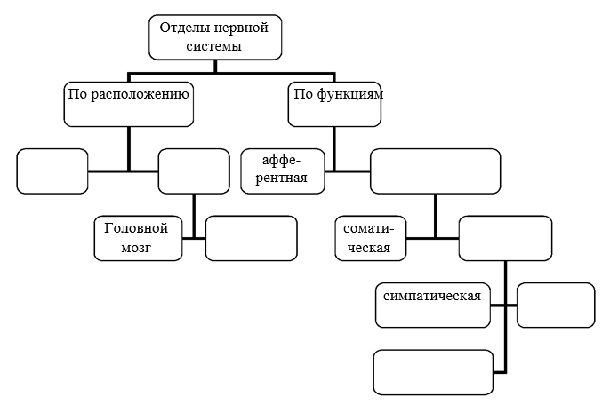 1. Допишите диаграмму «Классификация отделов нервной системы»