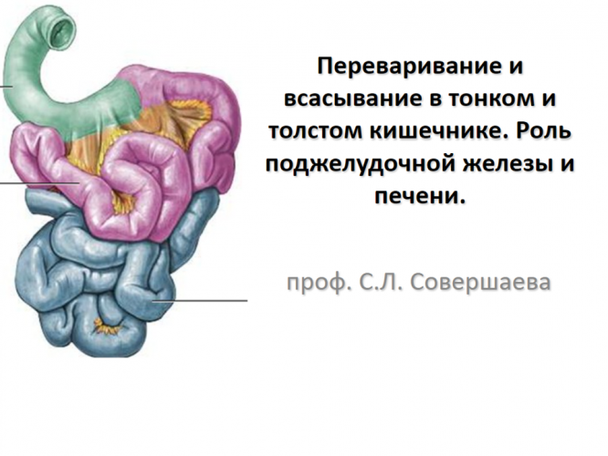 Для студентов СГМУ по предмету ФизиологияЛекция. Переваривание и всасывание в тонком и толстом кишечнике. С.Л. СовершаеваЛекция. Переваривание и всасывание в тонком и толстом кишечнике. С.Л. Совершаева