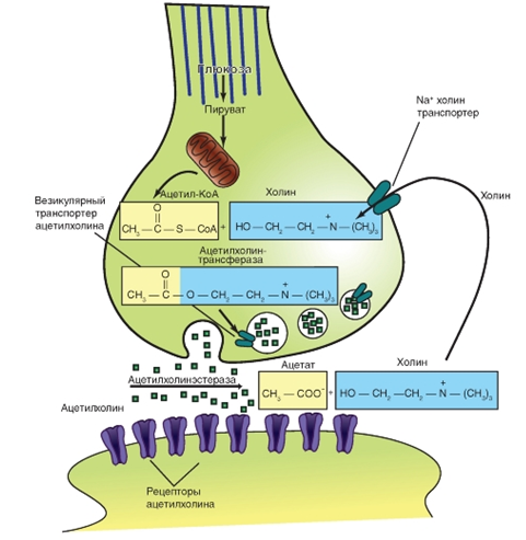 Высокая, в ряде случаев, потребность в молекулах трансмиттера вызывает, как правило, синтез трансмиттера на месте, то есть непосредственно в пресинаптическом окончании.