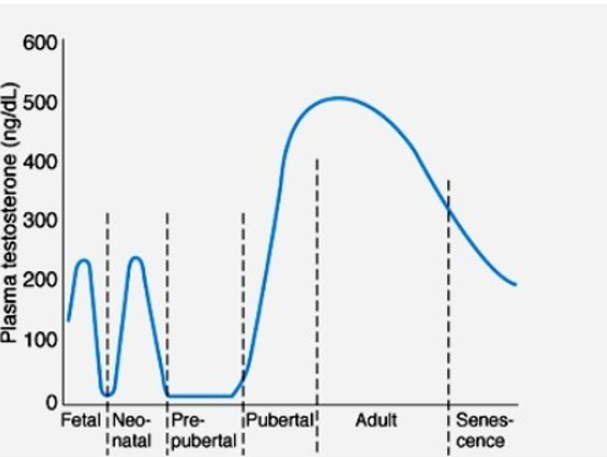 - ↑ плазменных уровней ЛГ и ФСГ и ↑ количества и активности клеток Лейдига (↑ тестостерон), ↑секреции тестостерона,