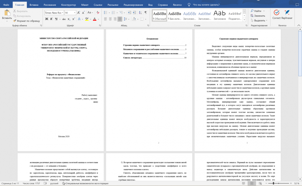 Реферат по предмету: «Физиология» на тема: «Физиология мышечных сокращений».