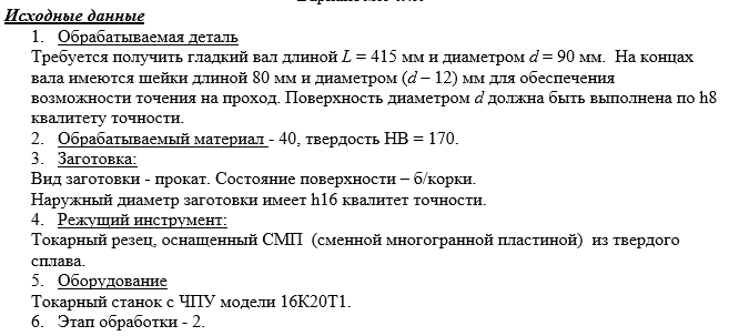 ДЗ 1: НАЗНАЧЕНИЕ РЕЖИМОВ РЕЗАНИЯ ДЛЯ ОПЕРАЦИИ ТОЧЕНИЯ вариант 16