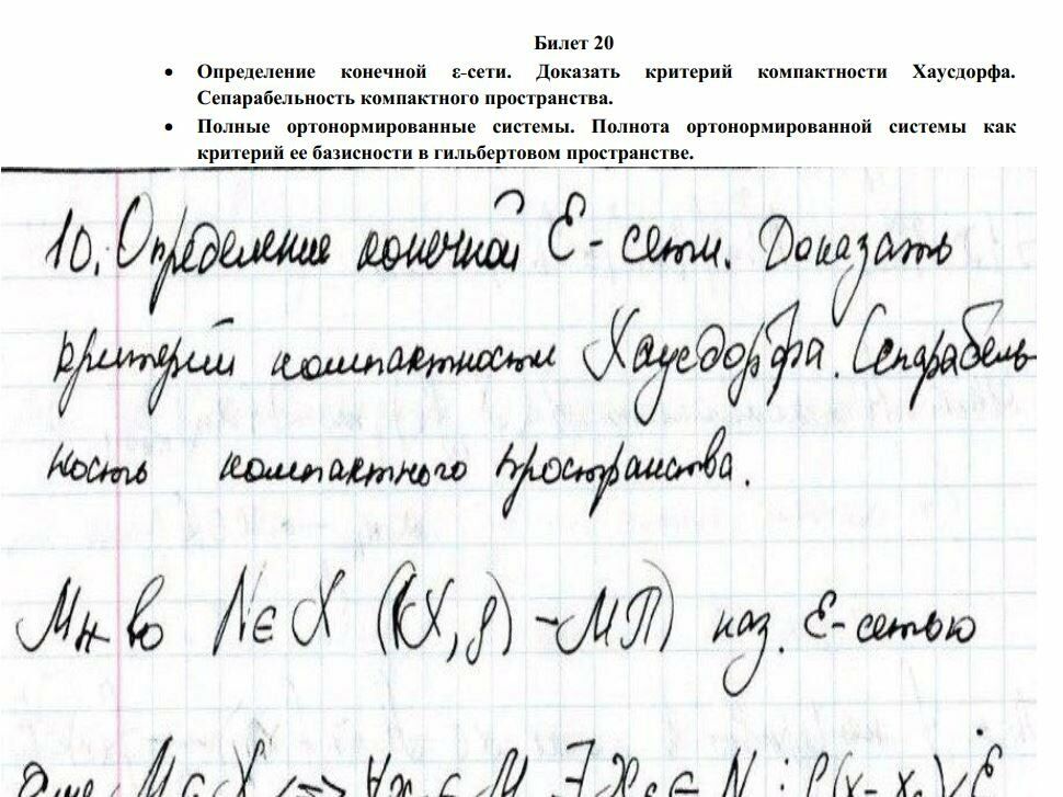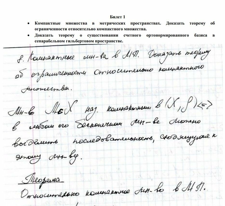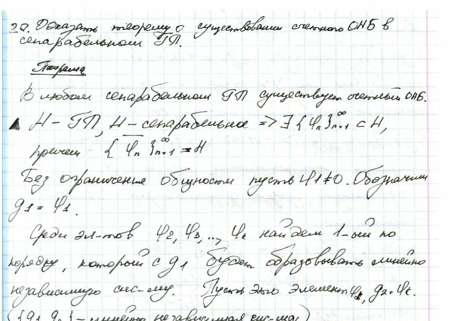 1.Доказать теорему о существовании счетного ОНБ в сепрабельном ГП. Компактные множества в МП.(определение).