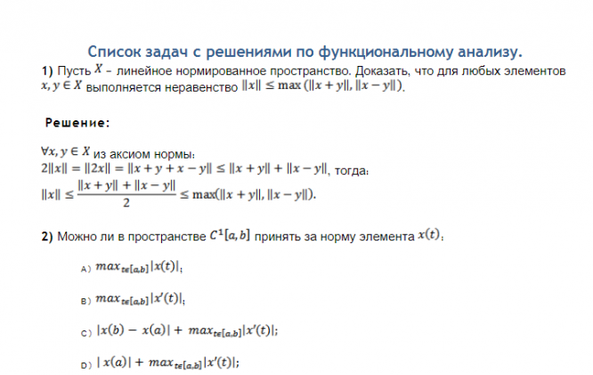Для студентов МГУ им. Ломоносова по предмету Функциональный анализНовые решения задачНовые решения задач