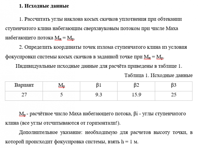 ДЗ: Расчет системы косых скачков уплотнения вариант 27
