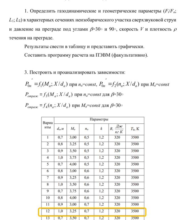 ДЗ: Домашнее задание №1 по дисциплине: «Газодинамика стартовых комплексов»