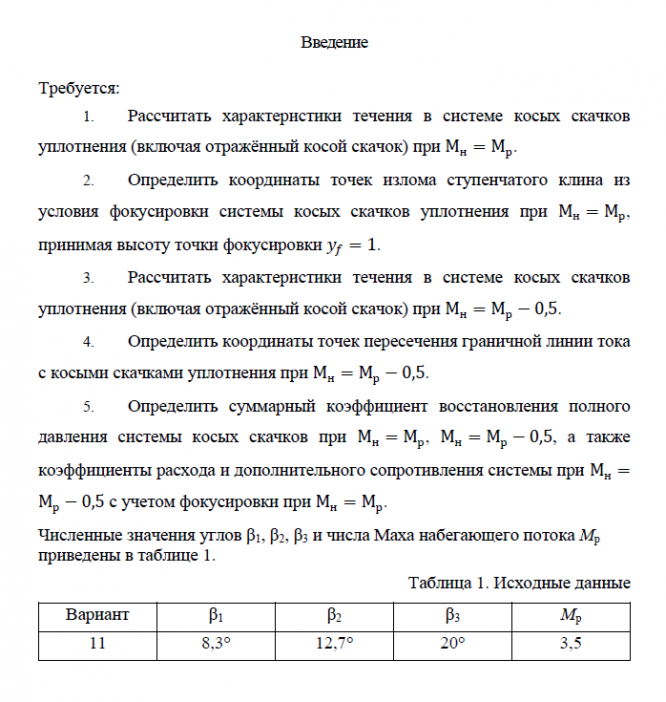 ДЗ: Расчет системы косых скачков уплотнения вариант 11