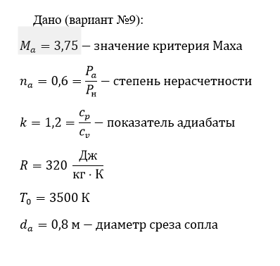ДЗ1 Вариант№9 проверенно и зачтено. Определение газодинамических и геометрических характеристик струи