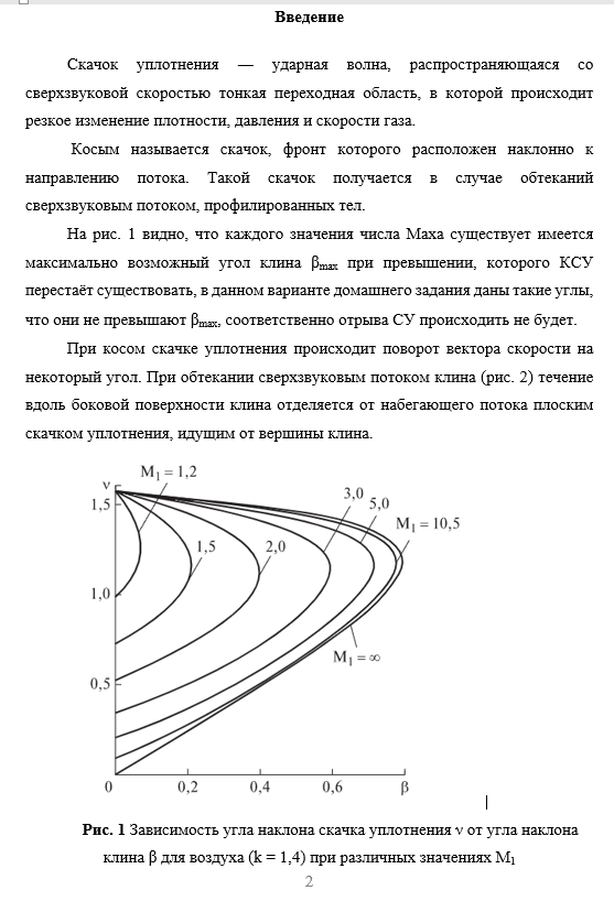 На рис. 1 видно, что каждого значения числа Маха существует имеется максимально возможный угол клина βmax при превышении, которого КСУ перестаёт существовать, в данном варианте домашнего задания даны такие углы, что они не превышают βmax, соответственно отрыва СУ происходить не будет.
