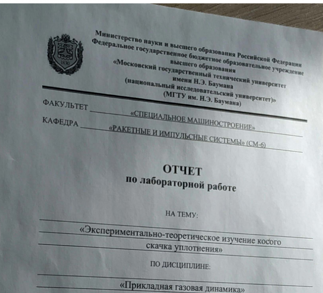 Для студентов МГТУ им. Н.Э.Баумана по предмету Газовая динамикаЭкспериментально-теоритическое изучение косого скачка уплотненияЭкспериментально-теоритическое изучение косого скачка уплотнения