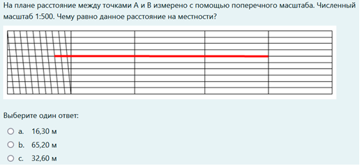 На плане расстояние между точками А и В измерено с помощью поперечного масштаба. Численный масштаб 1:500. Чему равно данное расстояние на местности?