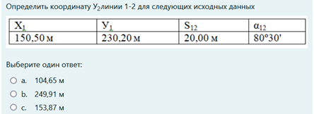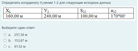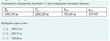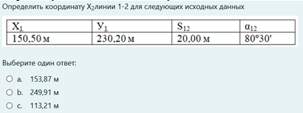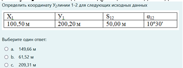 Выберите формулу вычисления прямоугольных координат вершин замкнутого теодолитного хода