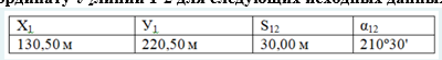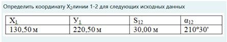 Определить координату Х2линии 1-2 для следующих исходных данных
