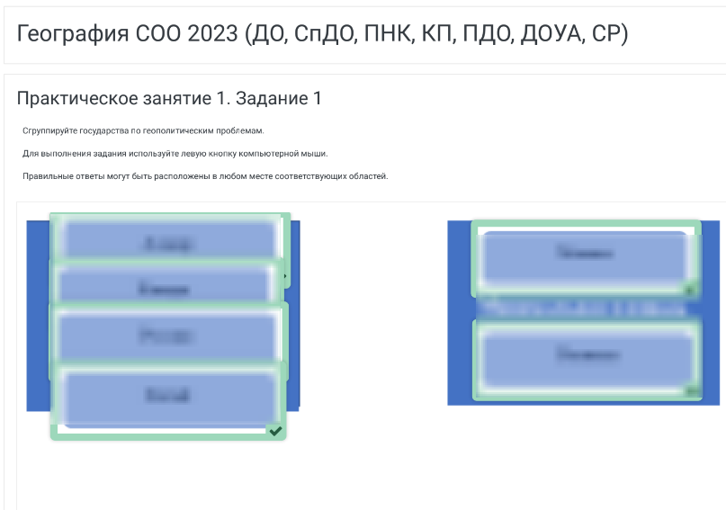 Правильные ответы могут быть расположены в любом месте соответствующих областей.