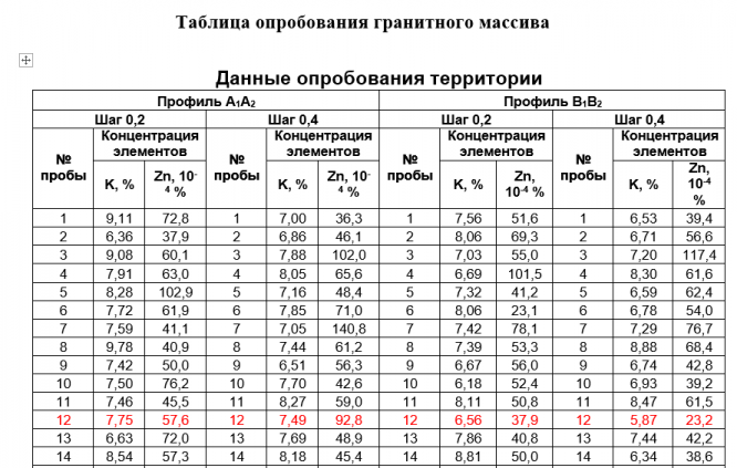 Определение степени однородности территории и расчет статистических параметров распределения макро- и микроэлементов в гранитном массиве по пересекающимся профилям с двумя шагами опробования