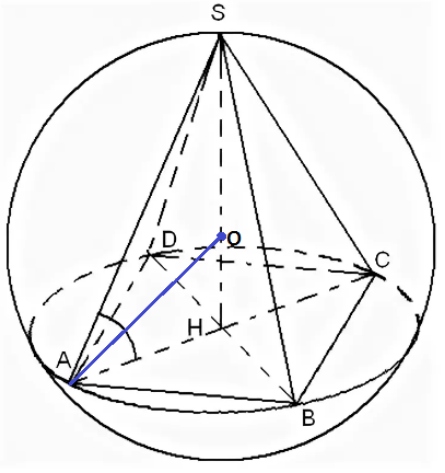 Для студентов по предмету ГеометрияВ правильной четырехугольной пирамиде боковое ребро равно 8 и наклонено к плоскости основания под углом 60°. Найдите объем описанного около пирамиды шВ правильной четырехугольной пирамиде боковое ребро равно 8 и наклонено к плоскости основания под углом 60°. Найдите объем описанного около пирамиды ш