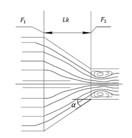 - Значения толщины вытеснения позволяют изменить границу твердых стенок в каждом расчетном сечении в сторону движущейся среды по нормали к стенке, то есть вводится фиктивная поверхность