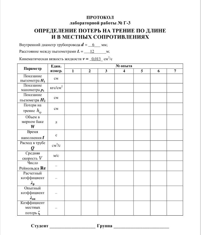 Лабораторная работа: ОПРЕДЕЛЕНИЕ ПОТЕРЬ НАПОРА НА ТРЕНИЕ ПО ДЛИНЕ И В МЕСТНЫХ ГИДРАВЛИЧЕСКИХ СОПРОТИВЛЕНИЯХ