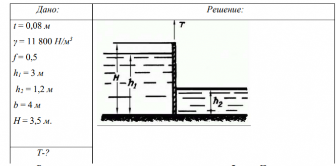 Для студентов АмГУ по предмету Гидрогазодинамика (ГГД)Найдите подъемное усилие Т, если толщина затвораНайдите подъемное усилие Т, если толщина затвора