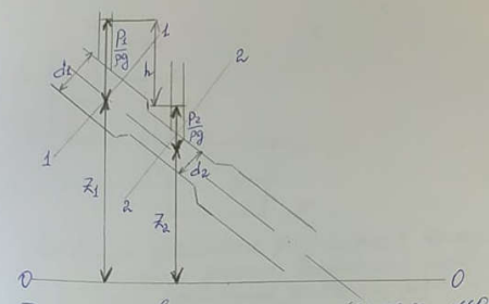 На трубопроводе установлен водомер Вентури. Определить расход воды, протекающий по трубопроводу, если разность показаний пьезометров h = 20 см, диаметр трубопровода d1 = 10 см, а диаметр горловины d2 = 5,6 см. При расчете потерями напора, а также сжатием струи в горловине пренебречь.