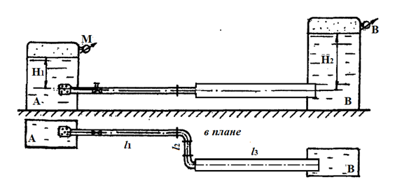 Для студентов АмГУ по предмету Гидрогазодинамика (ГГД)Из резервуара А в резервуар В вода подается по трубопроводу, состоящему из трех участковИз резервуара А в резервуар В вода подается по трубопроводу, состоящему из трех участков