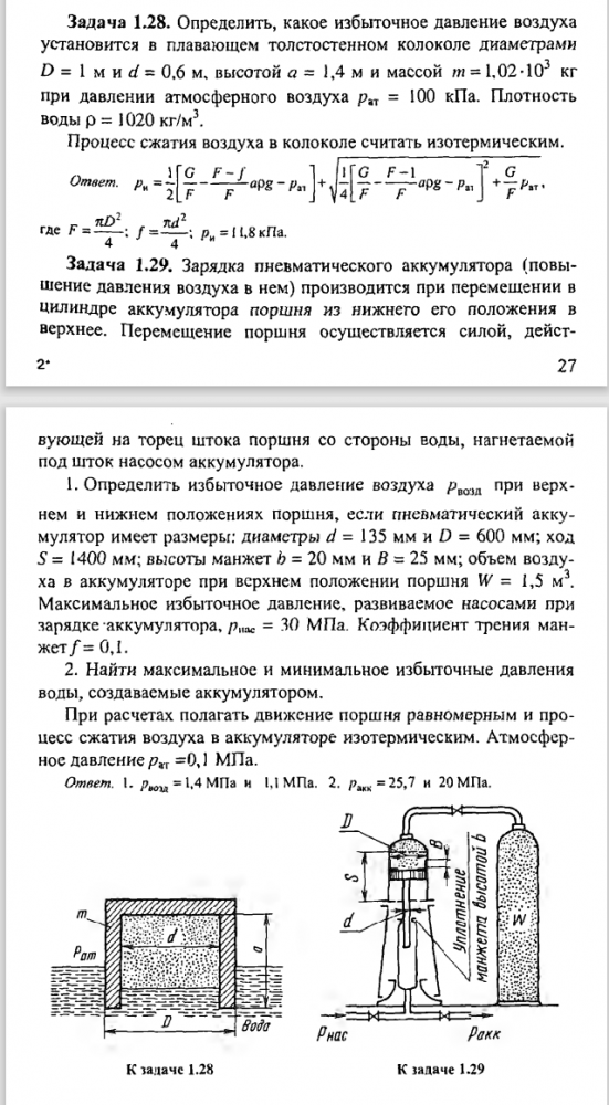Для студентов МГТУ им. Н.Э.Баумана по предмету ГидромеханикаЗадача 1.28Задача 1.28