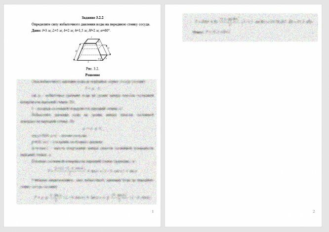 Для студентов ГУМРФ по предмету ГидромеханикаОпределите силу избыточного давления воды на переднюю стенку сосуда. Дано: l=3 м; L=5 м; b=2 м; h=1,5 м; H=2 м; α=60°.Определите силу избыточного давления воды на переднюю стенку сосуда. Дано: l=3 м; L=5 м; b=2 м; h=1,5 м; H=2 м; α=60°.