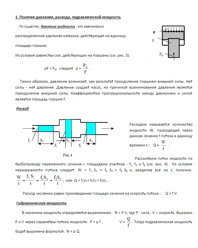 - 1. Понятия давления, расхода, гидравлической мощности.