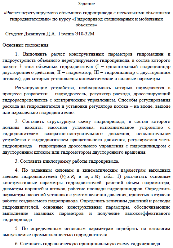 Для студентов МГТУ им. Н.Э.Баумана по предмету Гидропривод кузнечно-штамповочных машин (ГКШМ) (МТ-6)Домашнее задание "Расчет гидропривода с несколькими исполнительными двигателями"Домашнее задание "Расчет гидропривода с несколькими исполнительными двигателями"