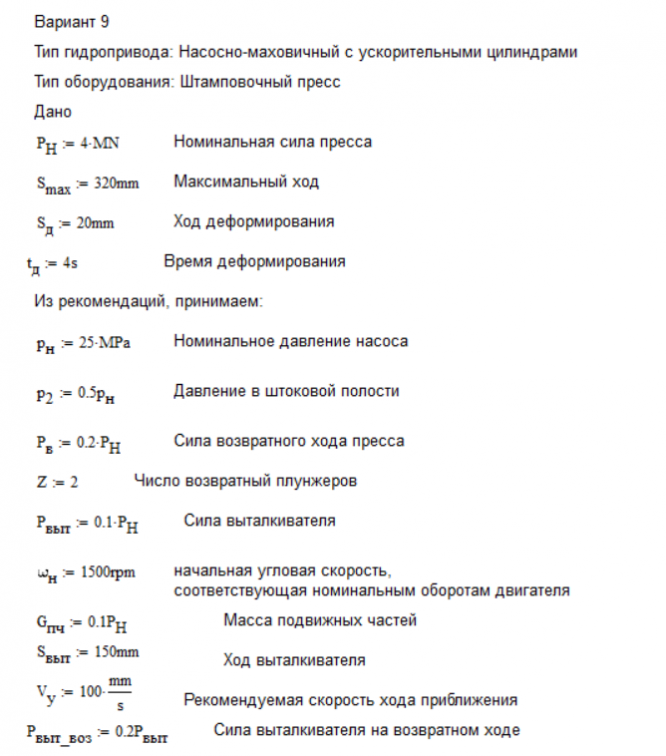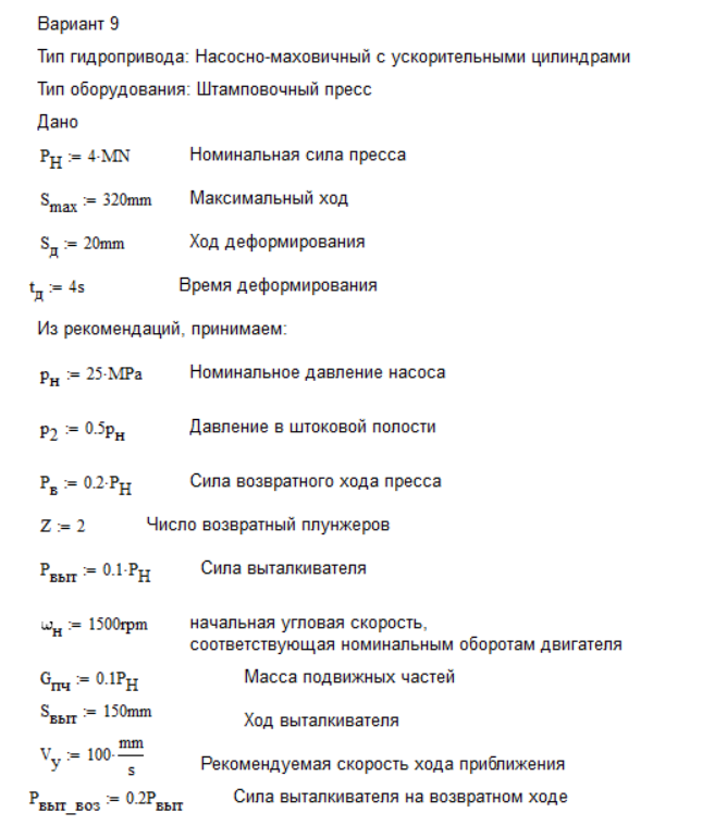 ДЗ: Расчет гидропривода КШМ вариант 9