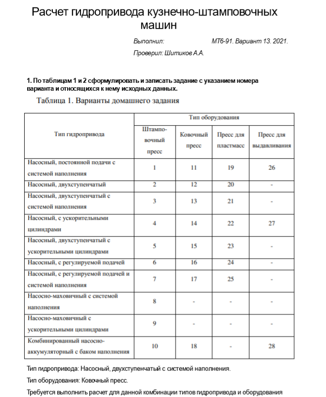 Для студентов МГТУ им. Н.Э.Баумана по предмету Гидропривод кузнечно-штамповочных машин (ГКШМ) (МТ-6)Вариант 13Вариант 13