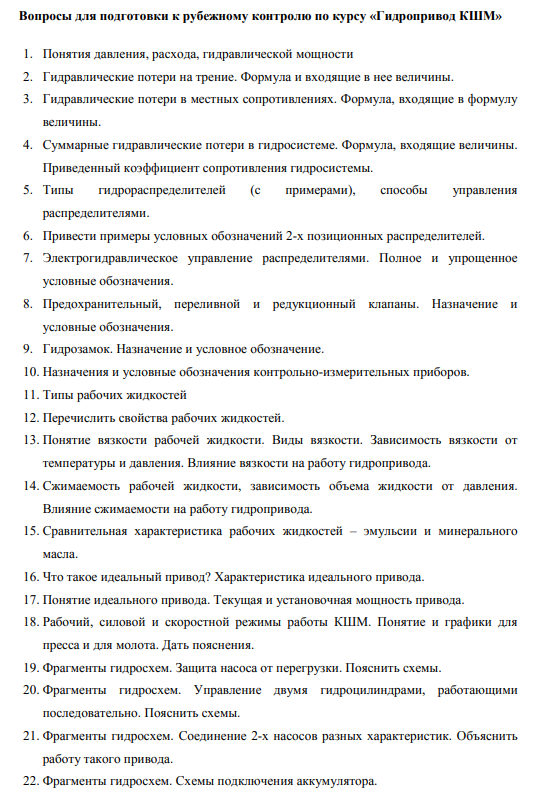 Для студентов МГТУ им. Н.Э.Баумана по предмету Гидропривод кузнечно-штамповочных машин (ГКШМ) (МТ-6)Вопросы к РК №1Вопросы к РК №1 2021-01-19СтудИзба