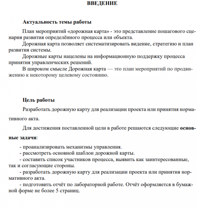 Цель работы Разработать дорожную карту для реализации проекта или принятия нормативного акта
