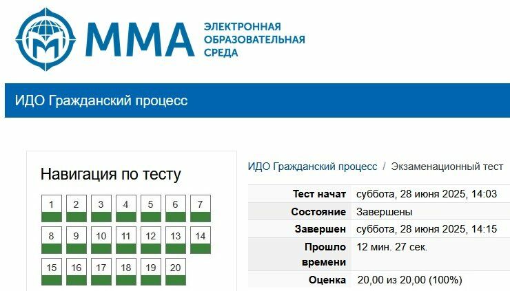 Сборник ответов к экзаменационному тесту Гражданский процесс ММА.