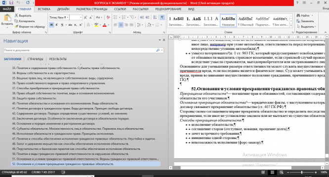 Для студентов РУТ (МИИТ) по предмету Гражданское право и процессВопросы для экзамена по курсу "Гражданское право"Вопросы для экзамена по курсу "Гражданское право"