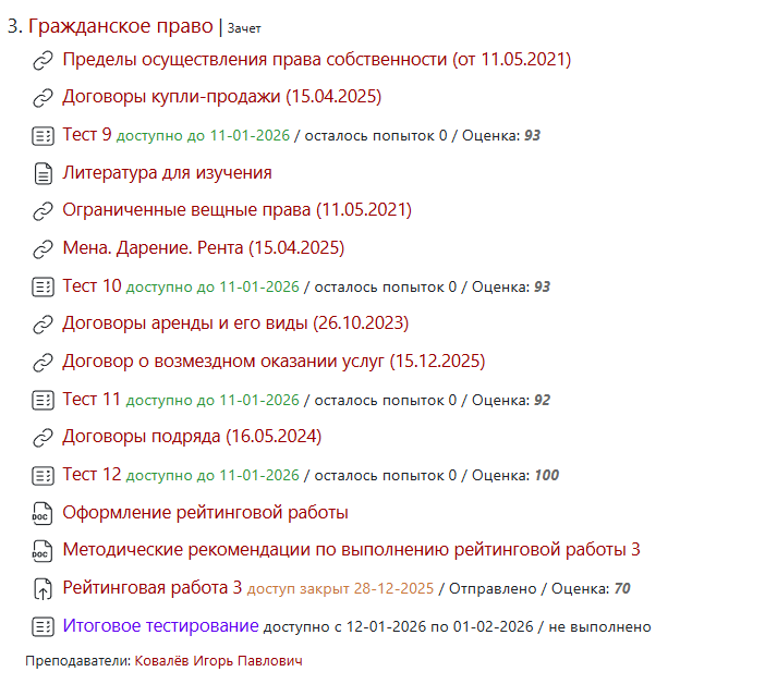 Ответы к зачёту Тесты 9-12: Гражданское право (Тесты 9-12)