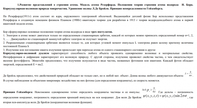 - Развитие представлений о строении атома. Модель атома Резерфорда. Теория Н. Бора. Уравнение волны Л.Де Бройля. Принцип неопределенности Гейзенберга.