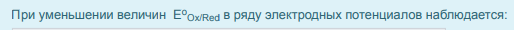 При уменьшении величин Е в ряду электродных потенциалов наблюдается: