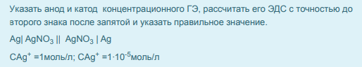 Указать анод и катод концентрационного ГЭ, рассчитать его ЭДС с точностью до второго знака после запятой и указать правильное значение.