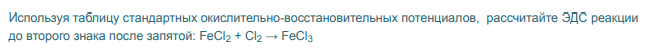 Используя таблицу стандартных окислительно-восстановительных потенциалов, рассчитайте ЭДС реакции до второго знака после запятой: