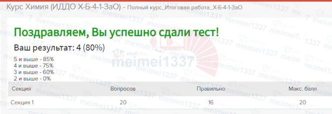 Для студентов ИДДО НИУ «МЭИ» по предмету ХимияПолный курс Итоговая работа - 80%Полный курс Итоговая работа - 80%